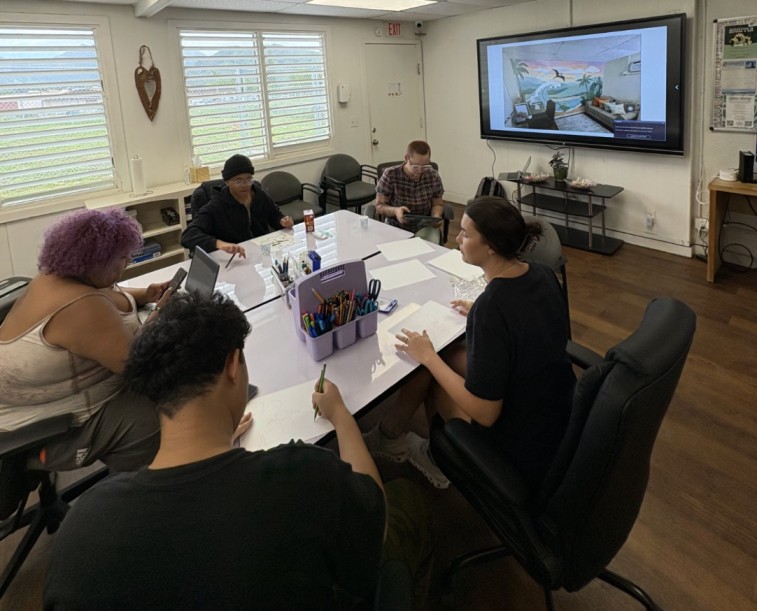On March 6th, something lasting was completed at our Kawailoa Learning Center, a mural inside the Counseling Room, created not just for our youth, but with them. What began as an Art Therapy & Mural Making workshop grew into a multi-week collaboration between RYSE youth and guest artist Zarian, a muralist and student at UH Mānoa who believes deeply in the healing power of art. Zarian brought more than artistic skill, she brought her lived experience. Through sharing her own mental health journey and how art became a form of healing, she created a space where youth felt safe to open up and reflect on their own experiences. The result is more than a mural, it’s a visual sanctuary.
