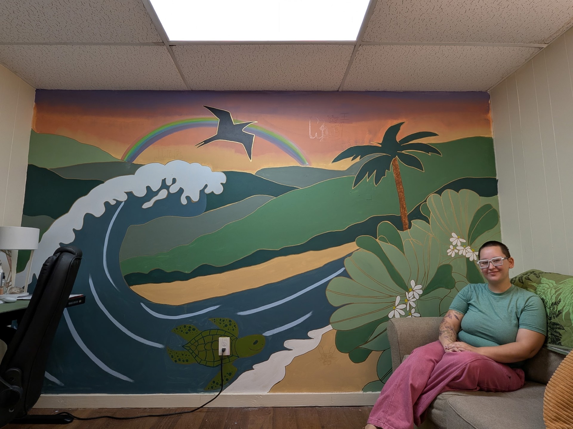 Hidden within the mural is something even more powerful, a clear gloss layer of artwork contributed by youth and staff, visible only at certain angles. A reminder that their voices are always present, even when unseen. Throughout the process, youth showed up, brainstorming, painting, layering, and sharing. Many connected deeply to the experience, speaking openly about their own creative outlets like music, poetry, and tattoo art. Now complete, the feedback has been simple but powerful: “Wow, it’s beautiful.” “It feels like a healing space.” And that’s exactly what it is. Mahalo to Zarian for sharing her story, her art, and her heart with our RYSE ʻohana. 💚